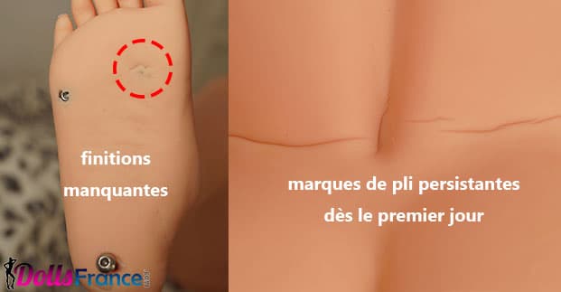 3. déchirures au niveau des articulations au bout de quelques jours, sous les pieds, au niveau de la nuque. Manque de finitions