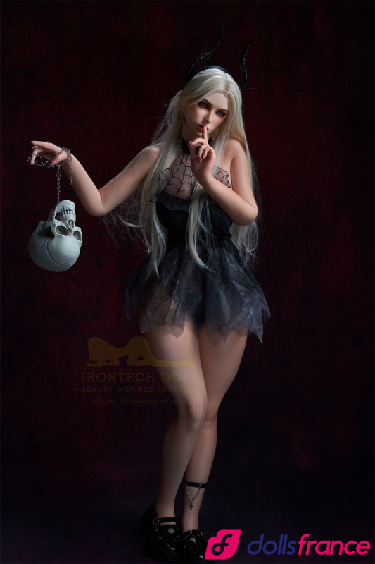 Bailey Lovedoll en silicone au corps voluptueux mesure 164 cm et se distingue par son énorme cul prêt à être exploré avec désir. Son allure maléfique est renforcée par sa robe noire sexy et ses cornes de diable joliment posées sur sa chevelure blonde, qui mettent en valeur ses yeux bleus hypnotiques. Elle incarne à merveille cet esprit d'Halloween, tenant entre ses mains une tête de mort pour compléter ce déguisement audacieux.