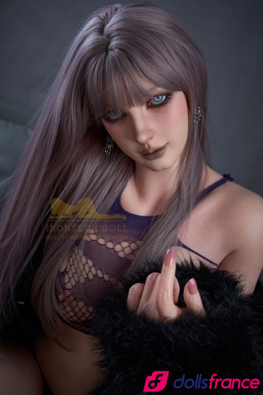 Cherry, poupée érotique en silicone gothique signée IronTech, mesure 169 cm et impose sa présence avec une allure unique. Ses cheveux violets flamboyants et ses yeux bleus perçants lui donnent un charme vampirique et sensuel qui séduit immédiatement. Cette grande sexdoll en silicone dégage un style gothique audacieux et captivant.