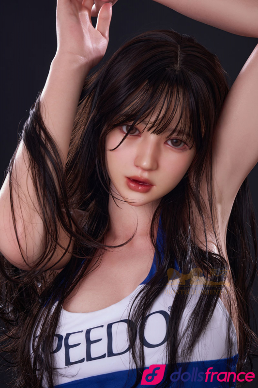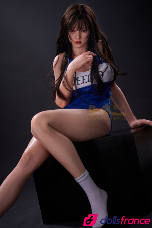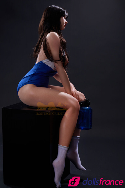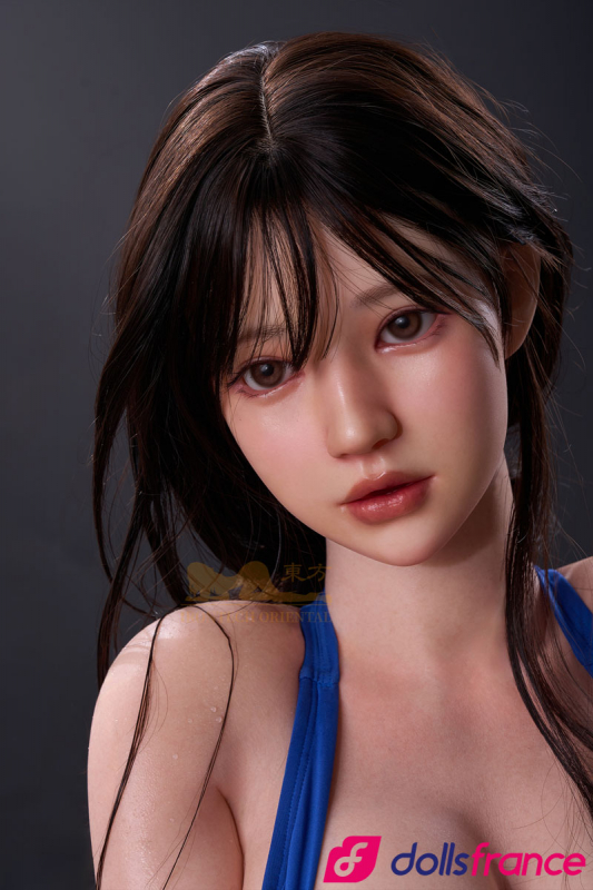 Evie la poupée d'amour nageuse japonaise glisse hors de l’eau, corps encore perlé d’une humidité qui n’existe que dans le regard. Cette belle poupée sexuelle en silicone de 161 cm, signée Oriental Series IronTech, porte le maillot de bain moulant bleu royal comme une seconde peau tendue sur des courbes athlétiques. Ses cheveux noirs longs tombent en mèches mouillées sur des épaules fines et un décolleté plongeant qui défie toute retenue.