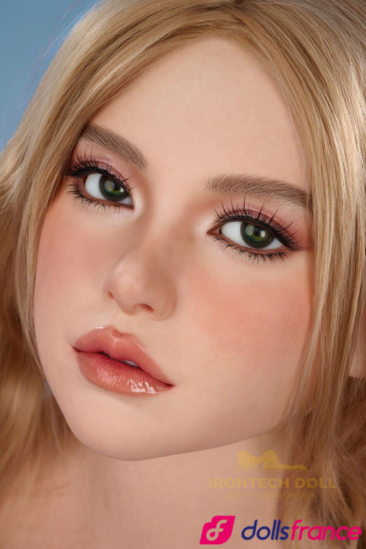Sa peau douce et détaillée met en valeur une poitrine opulente, une taille fine et des hanches marquées, le tout soutenu par un squelette articulé robuste qui permet des poses variées et naturelles. Les cheveux blonds de cette love doll en silicone IronTech cascadent en vagues souples autour de son visage aux traits fins et captivants.