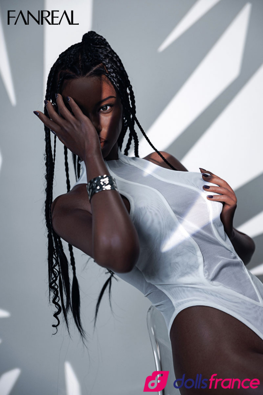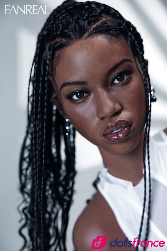 Ellie la sexdoll en silicone noire de la marque FanReal mesure 173 cm et a des nichons bonnet D qui subliment ses courbes généreuses. Cette sexdoll africaine se distingue par ses magnifiques cheveux tressés implantés avec minutie, apportant authenticité et charme à son apparence. Son visage harmonieux, avec des lèvres pulpeuses et un nez parfaitement proportionné, lui donne une allure incroyablement réaliste.