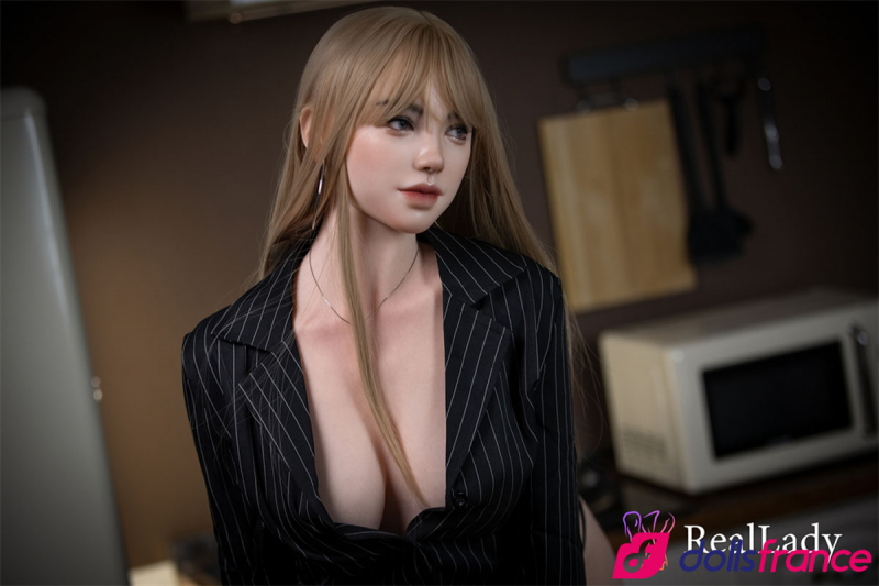 Layla porte une veste de tailleur ajustée, subtilement ouverte, qui met en valeur ses gros seins et révèle son style audacieux. Ses boucles d’oreilles en anneaux et ses talons aiguilles complètent sa tenue, accentuant la grâce et l’élégance de son corps sculpté. Chaque détail de cette sexdoll Real Lady a été pensé pour offrir un réalisme saisissant et une présence captivante.