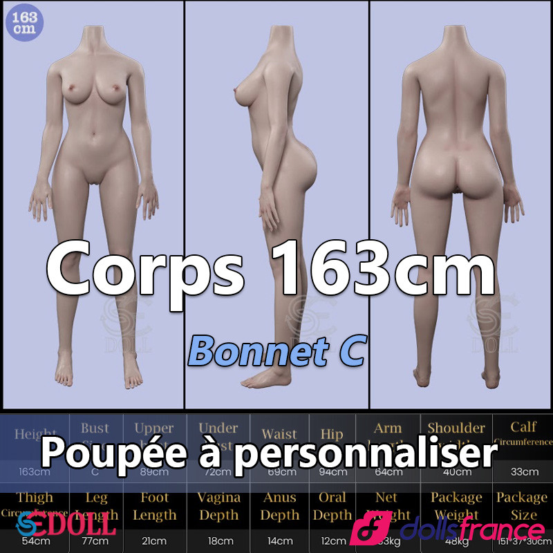 Le corps de sexdoll en silicone personnalisable de 163 cm du fabricant SEdoll incarne le réalisme et la sensualité. Avec sa poitrine bonnet C généreuse et ses courbes élégantes, il séduit au premier regard. Les seins, remplis de gel, offrent une sensation naturelle et un toucher bluffant de réalisme. Équipé d’un squelette EVO, ce corps permet de placer votre sexdoll dans toutes les positions désirées, pour des expériences variées et inoubliables. Le maquillage du corps, d’une grande finesse, accentue chaque détail et donne l’illusion d’une véritable peau humaine.