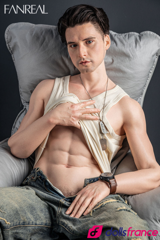 Henry, cette love doll masculine en silicone hyper réaliste signée FanReal, culmine à 173cm avec un corps athlétique sculpté, des abdominaux saillants et une présence virile qui impose le respect. Son visage aux traits ciselés, avec une barbe naissante et un regard intense, respire une masculinité brute et captivante.
